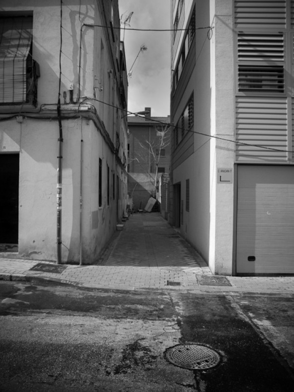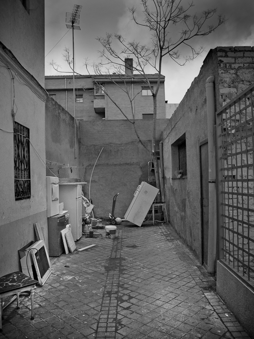 At the bottom of this alley there are placed a washing machine, a fridge an more electricals... runnig