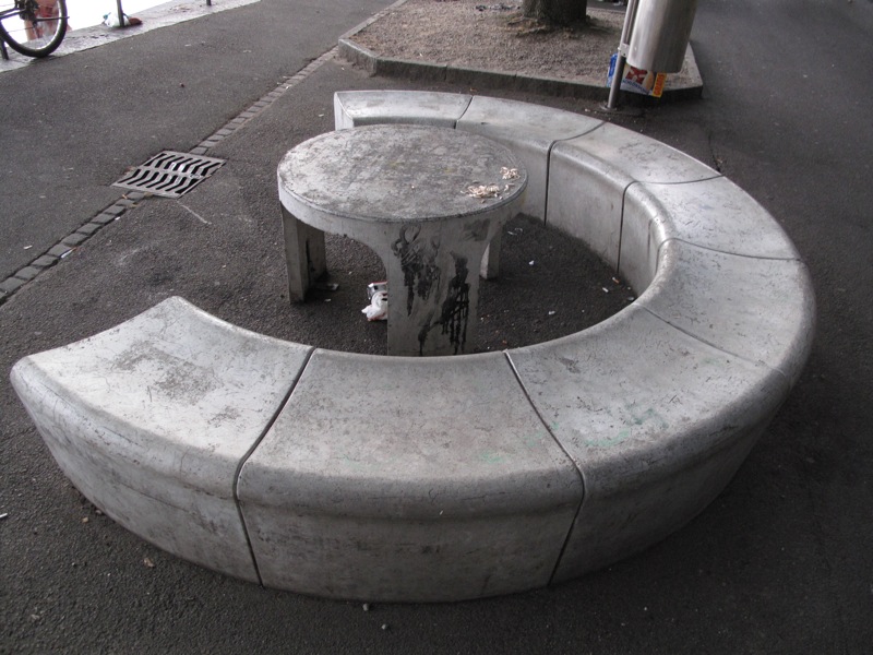 An interesting case of permanent street furniture design, a shape calling for conviviality and ready for some serious hibachi barbecuing.