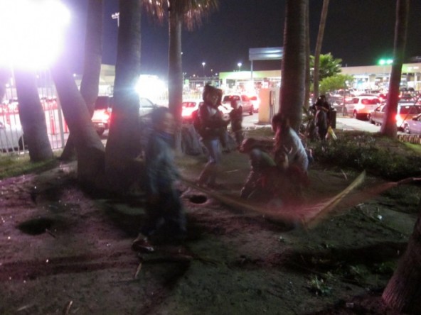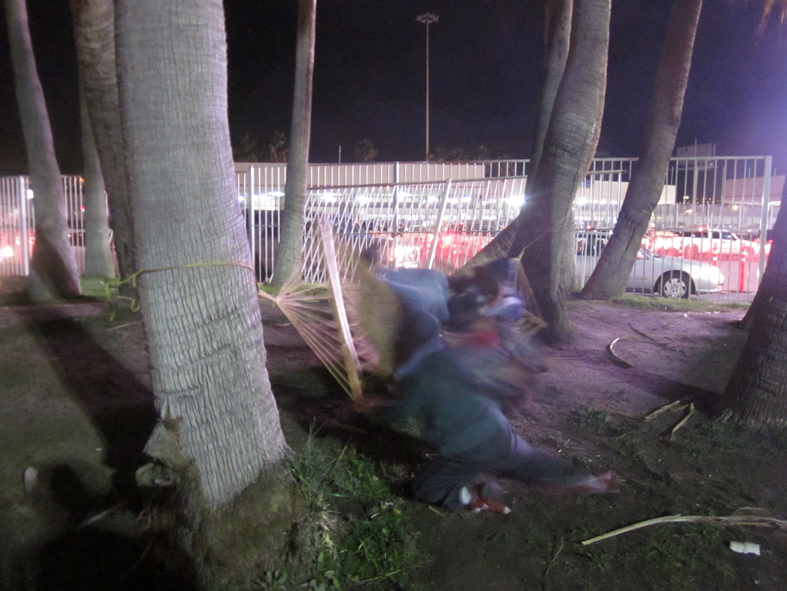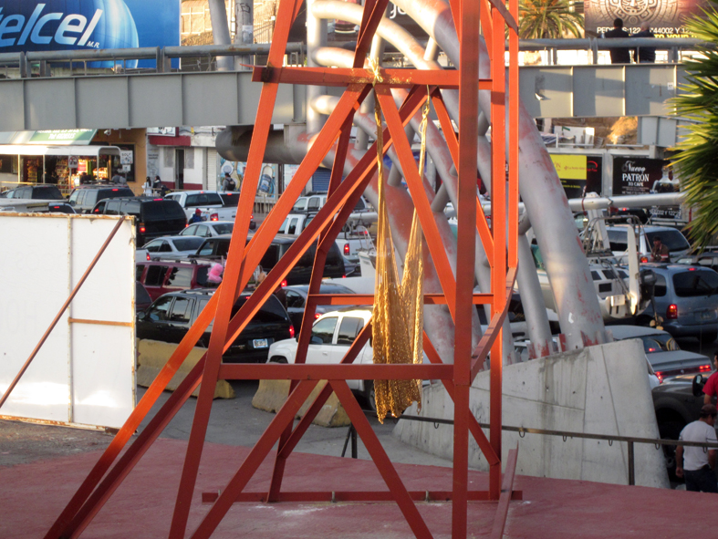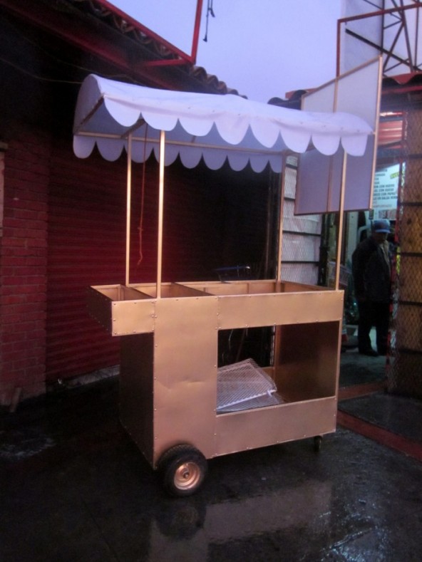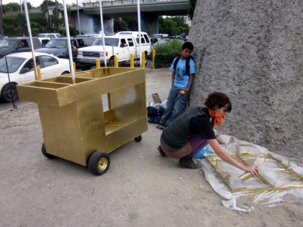 ACTION 6 : Un carrito (chariot) est peint en or et utilisé de la nuit à l'aube par les vendeurs ambulants et le jour par un membre d'Adaptive Actions pour circuler à proximité de la frontière (entre les voitures et les files d'attente) sans rien vendre ou offrir. Malgré l'acceptation (sous condition au départ) et l'appréciation du propriétaire et des usagers du chariot et du résultat final, d'autres commerçants indiquent que la couleur est nonréglementaire. Le chariot est alors repeint en blanc la veille du départ de Dare-Dare.