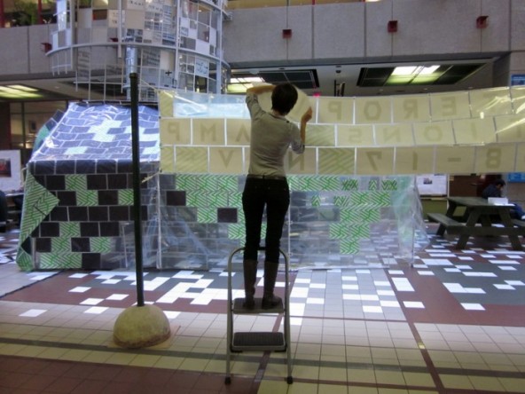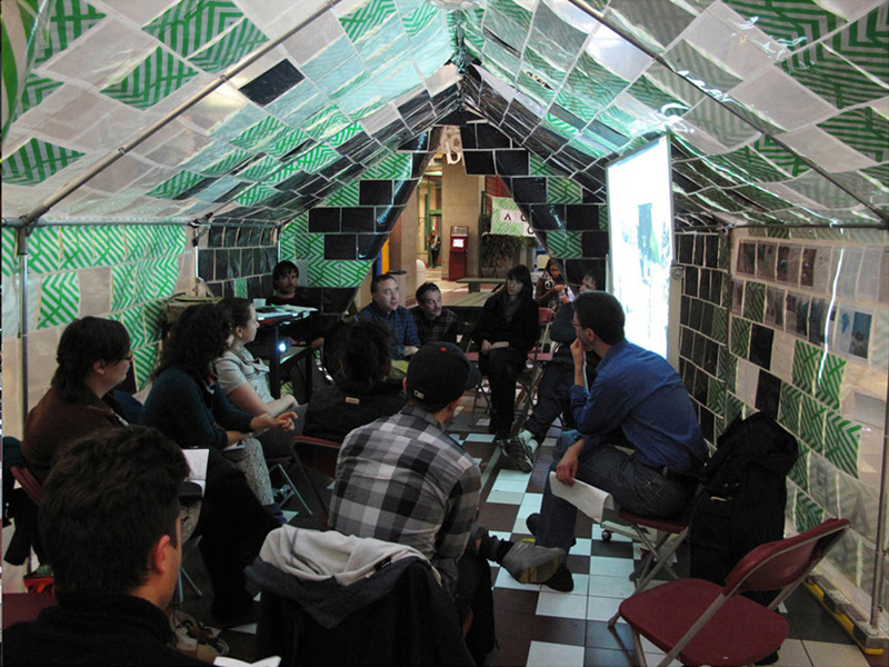 Camp Adaptive Actions La Galerie Leonard & Bina Ellen a invité Adaptive Actions (AA) à soumettre un projet pour l’automne 2010. Le Camp Adaptive Actions, né d’une série de conversations entre la galerie et AA, a pris place dans l’atrium de l’édifice McConnell de l’université Concordia, du 8 au 17 novembre de la même année. Lire texte dans le livre Hétéropolis.